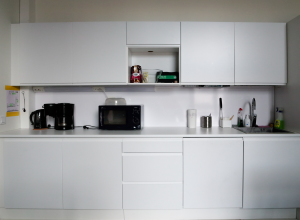 There is a professional cleaner that cleans the space thoroughly once a week. The tenants need to take proper care that they always leave the space in a clean state, since there are other users often during the same day.